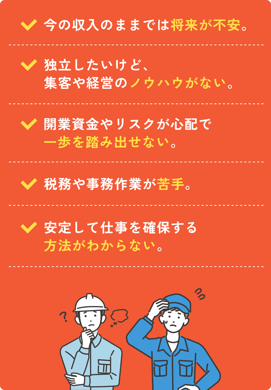 必要最低限の道具や車両のみで開業できます。初期費用を抑えてスタートできるため、低リスクでの独立が可能です。